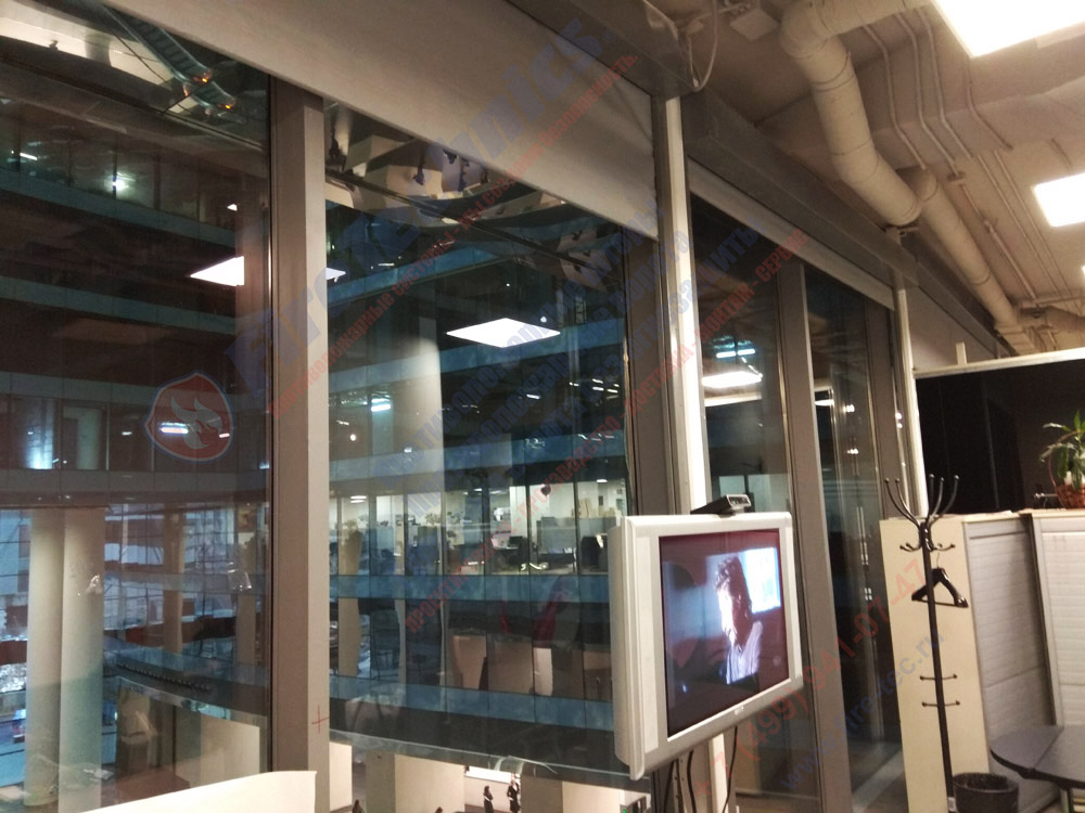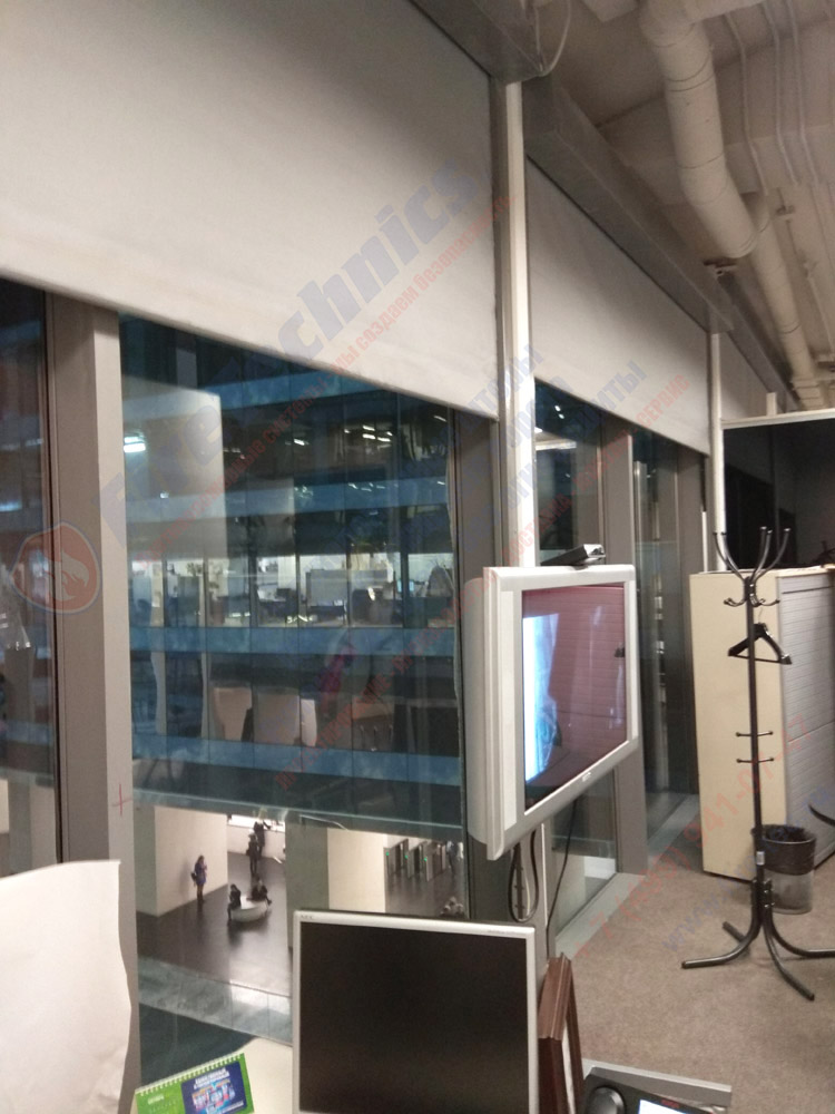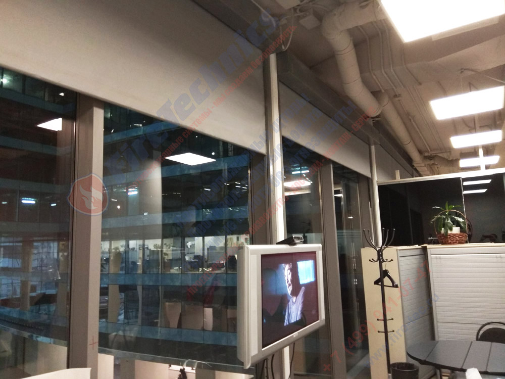 Как правило положение штор нормально открытое, при поступлении сигнала «пожар», штора автоматически начинается опускаться и перекрывать проем.